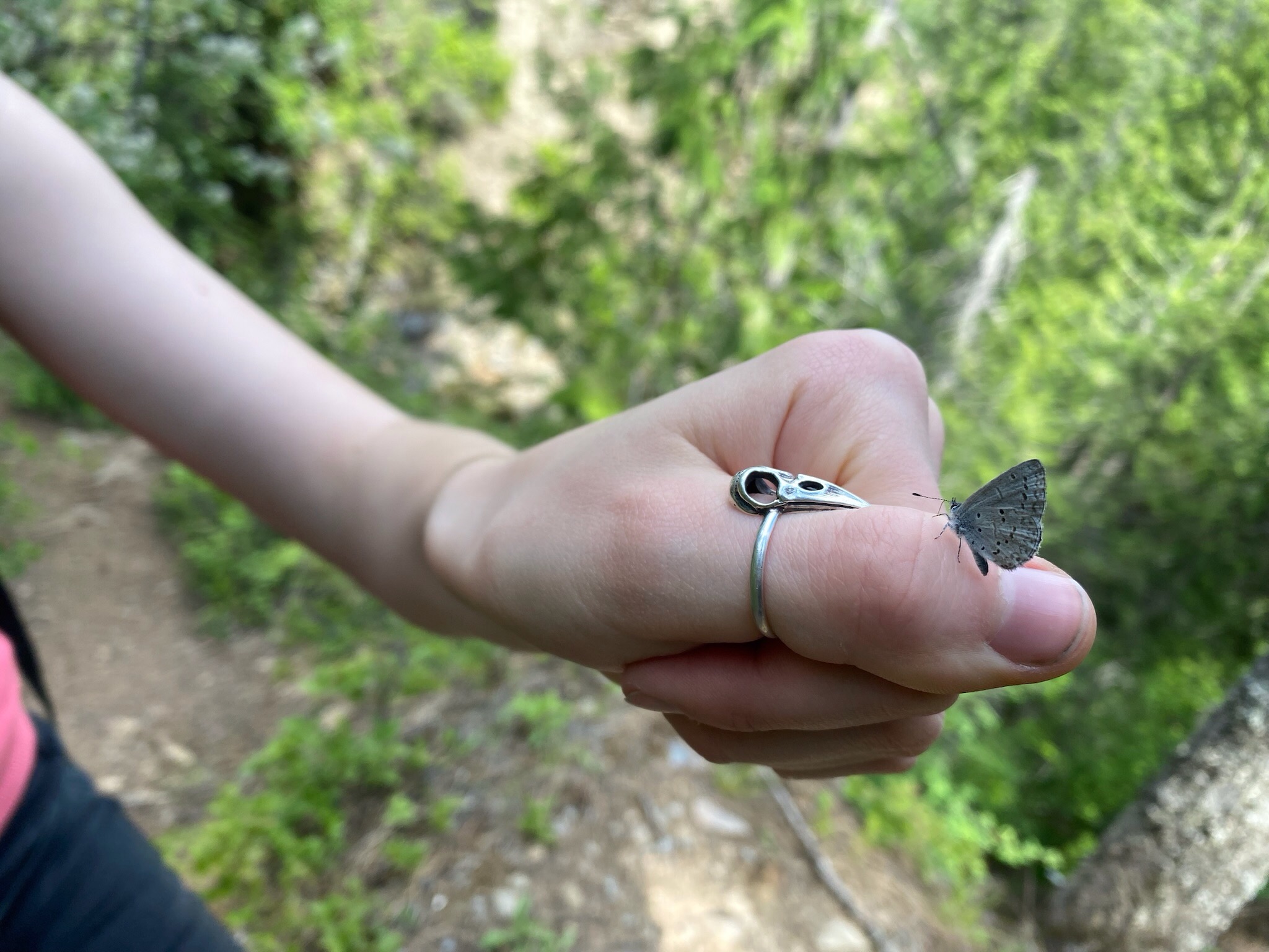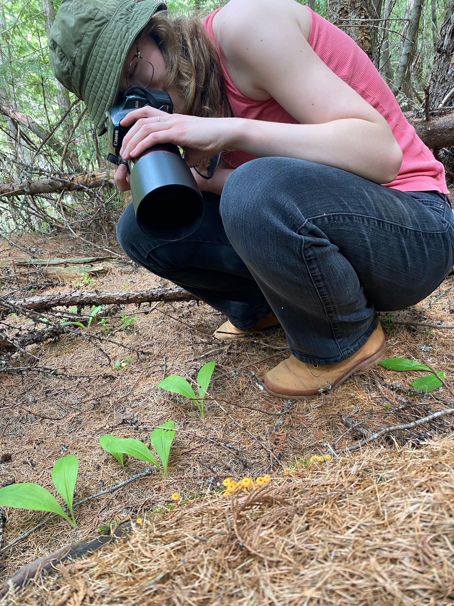 Another lovely hike with my auntie! This particular adventure was to a beautiful waterfall nestled in West Creston. Since the behind-the-scenes photos of me were appreciated in the last post I wrote about hiking with her, I decided to include some in this post as well. We encountered a friendly little spring azure butterfly, endearing orange mushrooms, a cool cave, fantastic moss, and what I believe was a Columbia spotted frog.